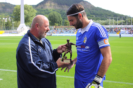 Jubiläum. Zum 10. Male wurde der Pokal vergeben und das Drehbuch wollte es so, dass der Sieger jener war, der ein Jahrzehnt zuvor bereits die allererste Trophäe überreicht bekommen hatte: Tino Berbig, aus Osnabrück an die Saale zurückgekehrt, verdiente sich während der gesamten Saison Bestnoten. Im Gegensatz zu seinen Vordermännern, denn am Ende stand der bittere Abstieg in die Viertklassigkeit.