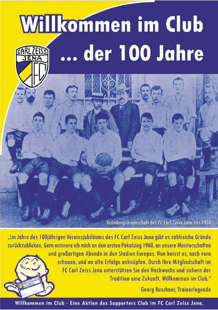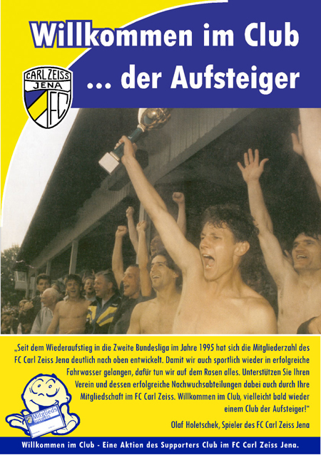 Eines der wichtigen Ziele der AG war allerdings stets auch, die Mitgliederbasis des FCC zu stärken. Lange Zeit stiefmütterlich im Verein behandelt, brachte der SC im Jahre 2003 das Thema in die Öffentlichkeit und sorgte mit der durch Plakate, Flyer und umfassende Werbepräsenz begleiteten Aktion „Willkommen im Club“ für einen echten Schub in der Mitgliederstatistik des FC Carl Zeiss. Über 100 Neumitglieder konnten in einer sportlich schwierigen Zeit gewonnen werden, und damit ganz nebenbei die finanzielle Ausstattung der Nachwuchsabteilung des FCC gestärkt werden. Zwei Jahre später wurde mit der Aktion „Wanted“ dann das 1000. Vereinsmitglied gesucht, gefunden und prämiert.