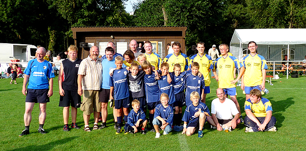 Gruppenfoto mit den Fußballern des SC-Patenteams beim Sommerfest 2009