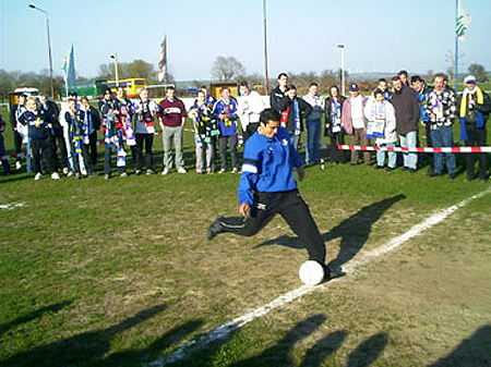 : Organisiertes Treffen mit der Mannschaft bei Bratwurst, Torwandschießen und mehr auf der Rückfahrt von einem siegreichen Auswärtsspiel