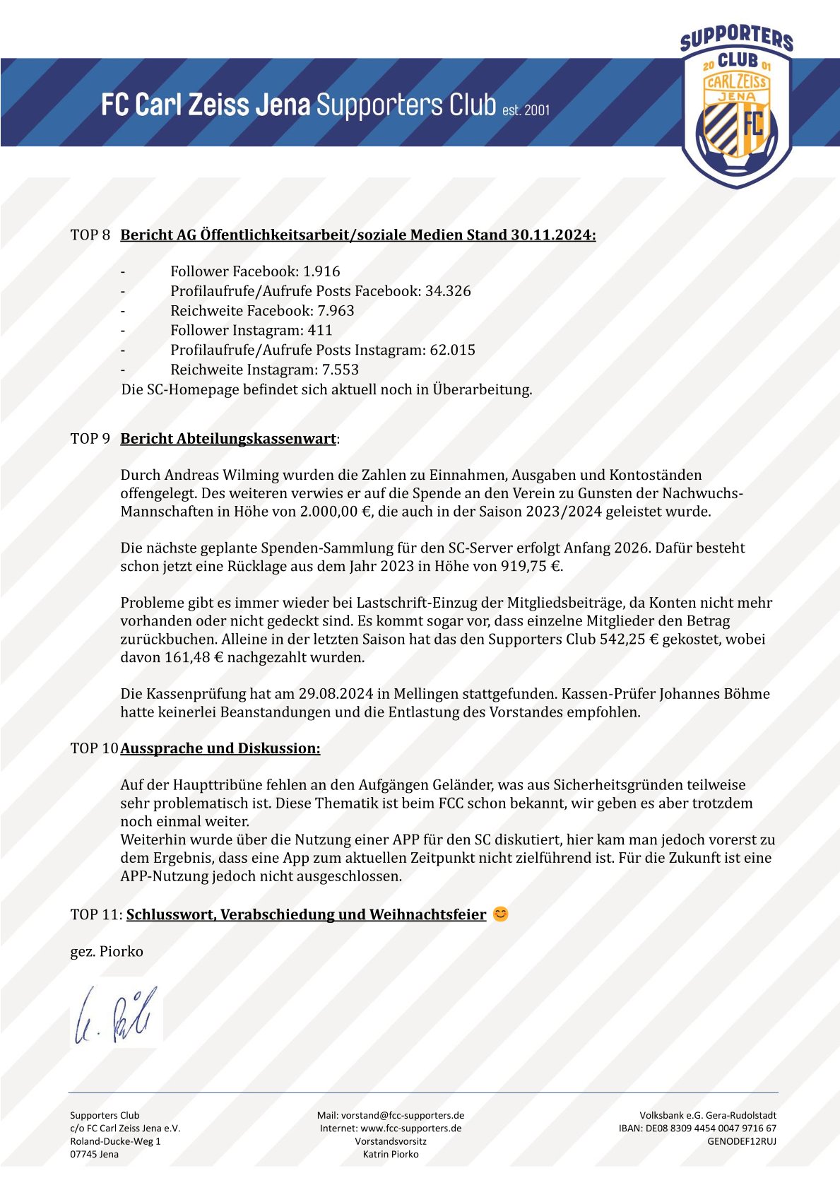 Der Supporters Club möchte sich an dieser Stelle ganz herzlich für eure Unterstützung bedanken, auch im Namen des FCC und der Mitglieder, denen ihr damit geholfen habt.